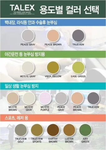 Q. 추천 색상은요? A. 운전은 그레이/브라운, 낚시는 코퍼/브라운, 골프는 코퍼 쪽이 무난합니다.