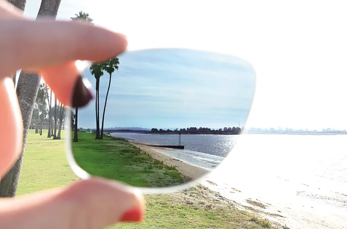 편광렌즈란 수면·노면·유리·금속처럼 수평 방향으로 반사된 눈부신 빛(편광)을 선택적으로 차단해 또렷한 시야를 만드는 특수 렌즈입니다. 바다에서 수면 반사광이 사라지듯 깔끔하게 보이는 그 느낌, 바로 이 메커니즘 덕분이에요.